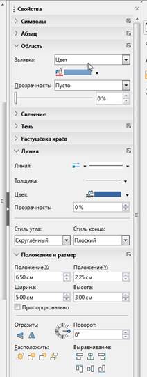(цвет), толщину и цвет его линий на панели свойств в правой части окна