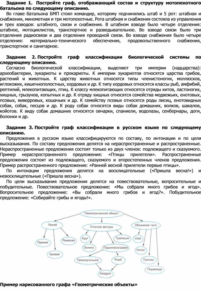 Задание 2. Постройте граф классификации биологической системы по следующему описанию.