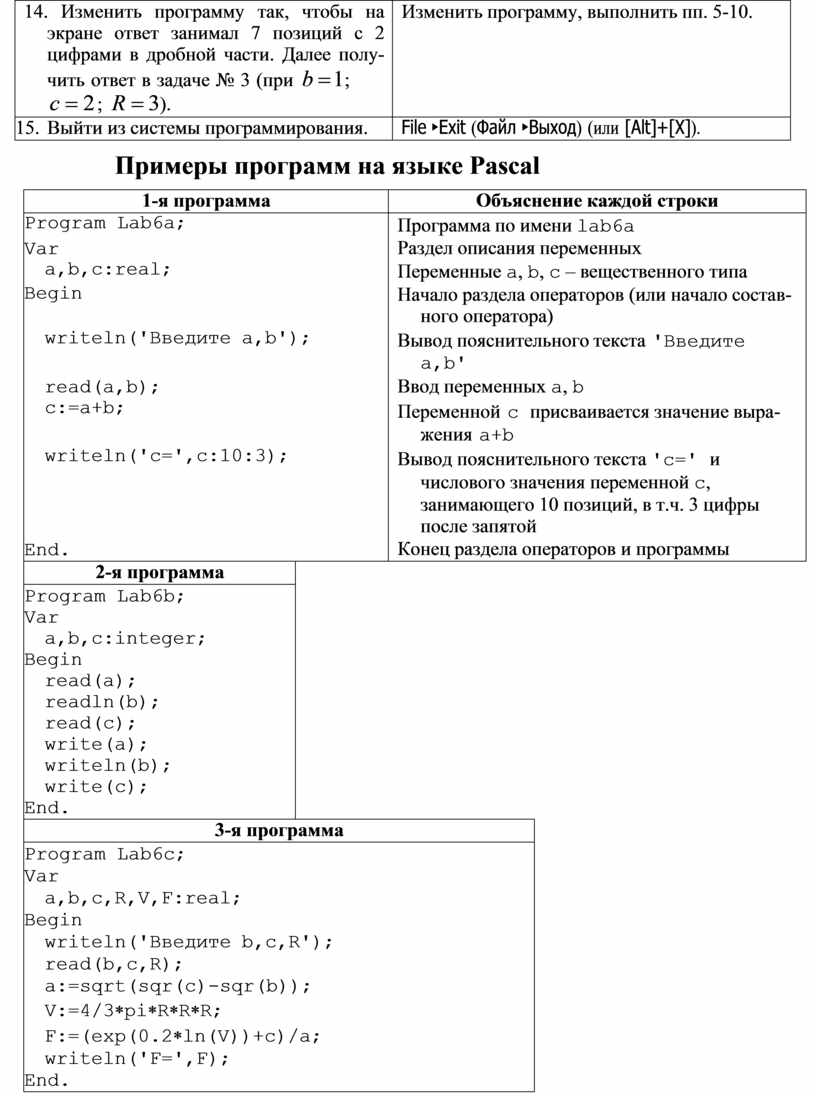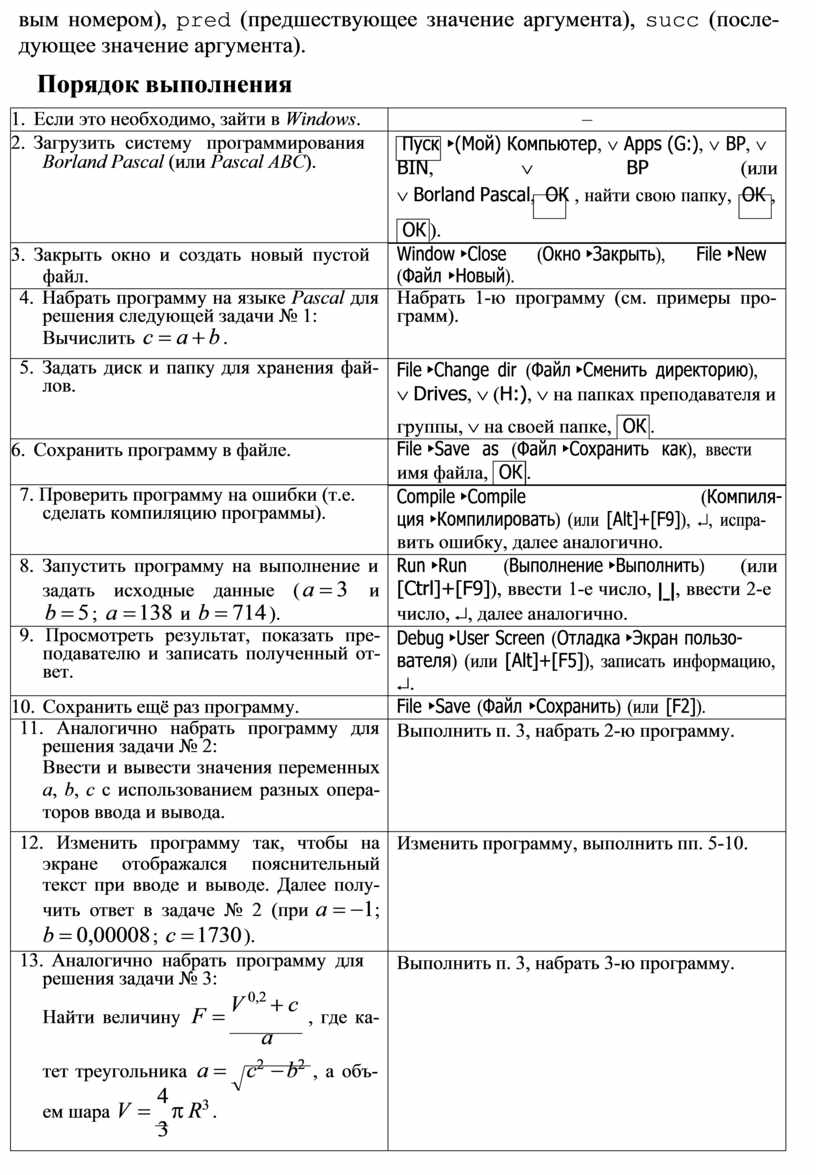 Цель работы: научиться составлять программы на языке Pascal для программирования последовательных вычислений и освоить работу с систе- мой программирования Pascal ABC (или Borland Pascal).