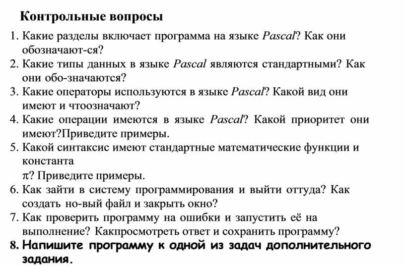 1. Какие разделы включает программа на языке Pascal? Как они обозначают- ся?
