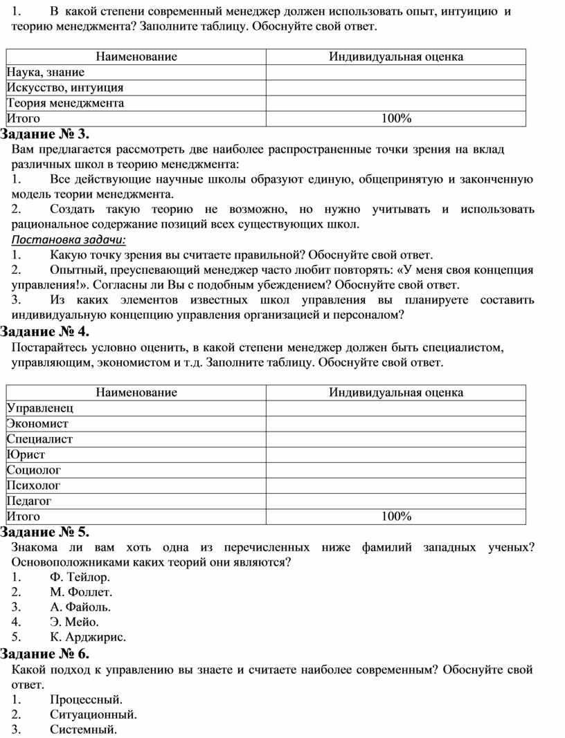 3. В какой степени современный менеджер должен использовать опыт, интуицию и теорию менеджмента? Заполните таблицу. Обоснуйте свой ответ.