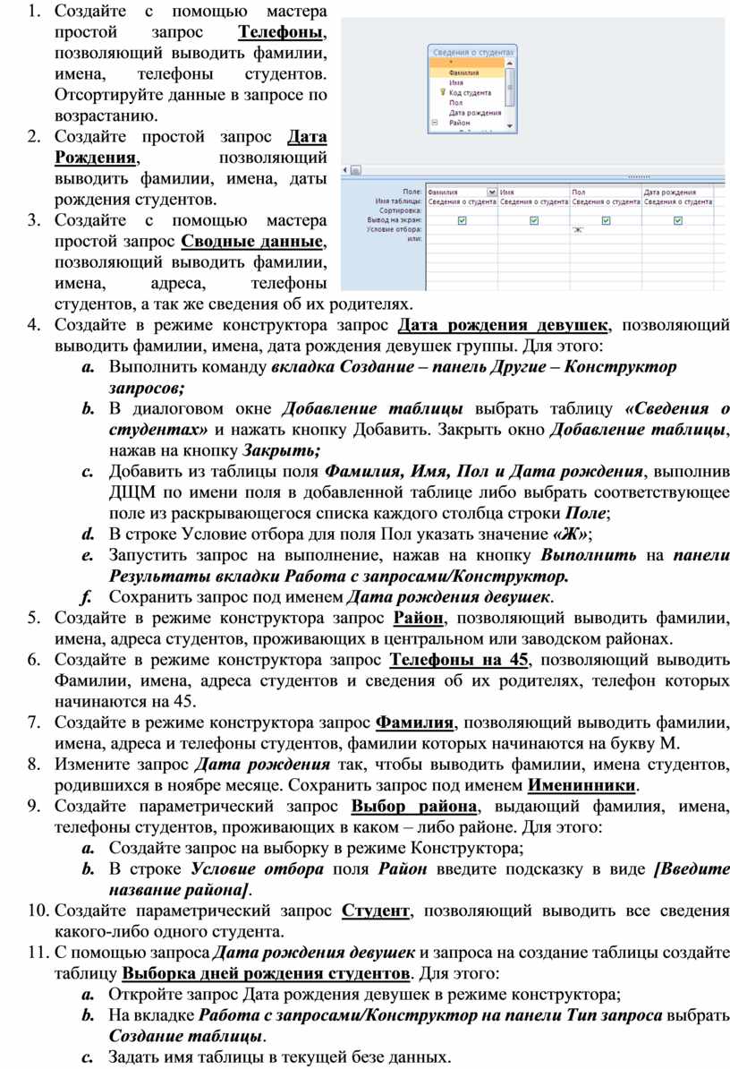 12. Создайте с помощью мастера простой запрос Сводные данные, позволяющий выводить фамилии, имена, адреса, телефоны студентов, а так же сведения об их родителях.