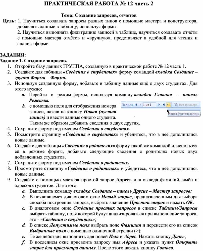 2. Научиться выполнять фильтрацию записей в таблице, научиться создавать отчёты с помощью мастера отчётов и «вручную», представляет в удобной для чтения и анализа форме.