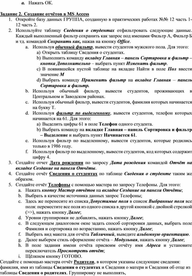 1. Откройте базу данных ГРУППА, созданную в практических работах №№ 12 часть 1-12 часть 2.
