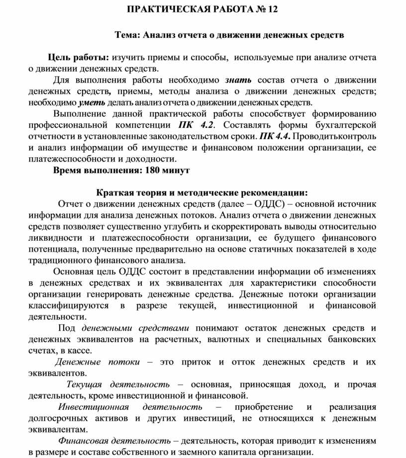 Цель работы: изучить приемы и способы, используемые при анализе отчета о движении денежных средств.