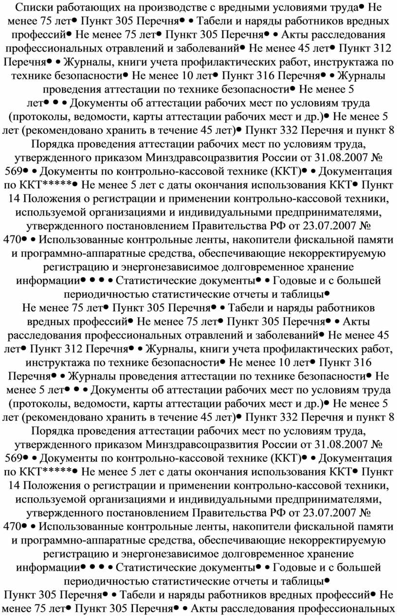 Списки работающих на производстве с вредными условиями труда |
