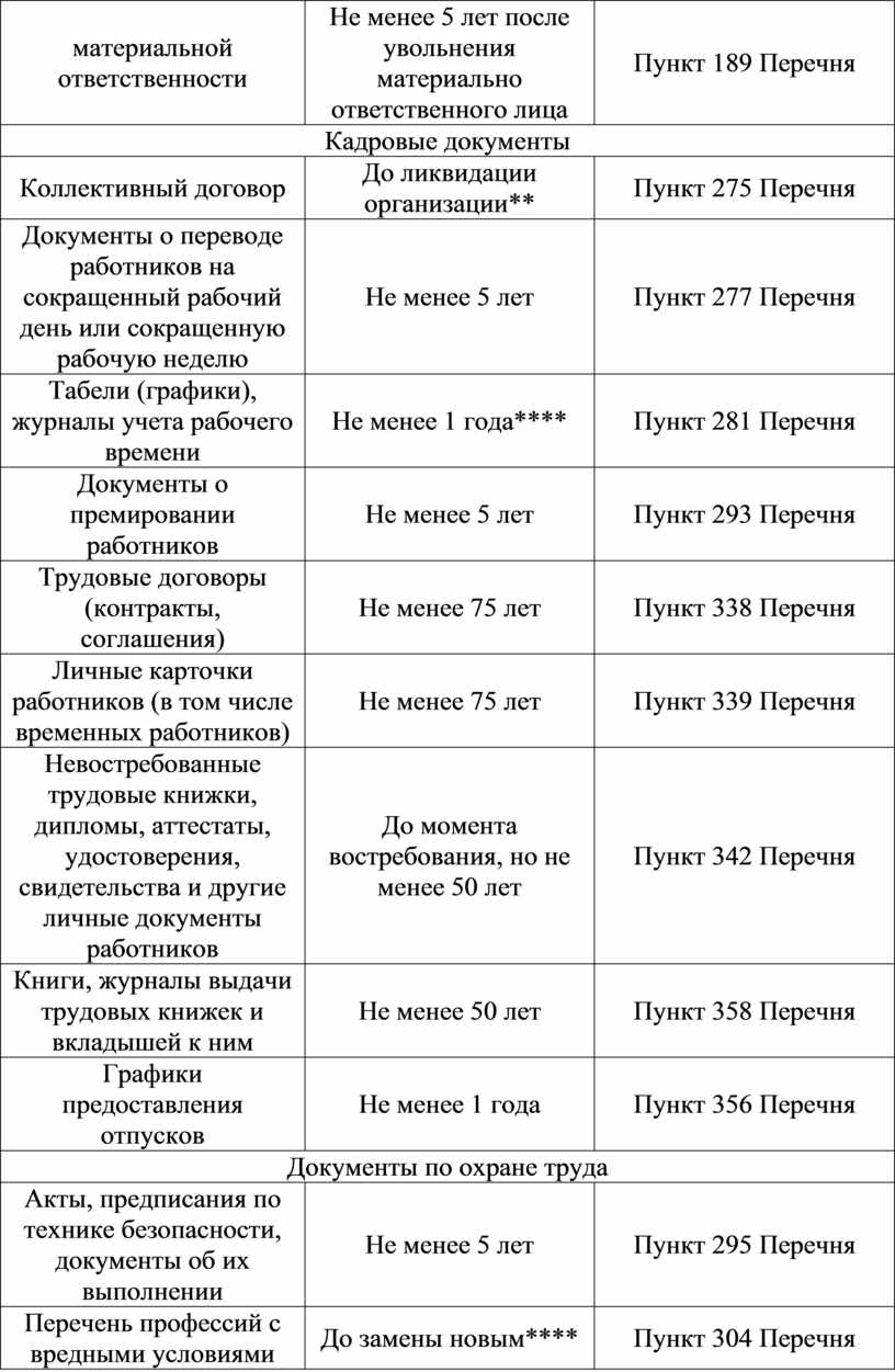 Не менее 5 лет после увольнения материально ответственного лица |