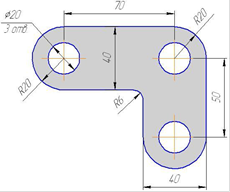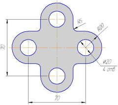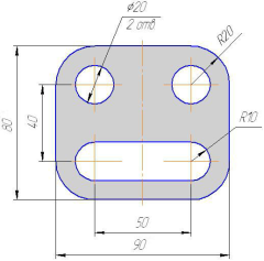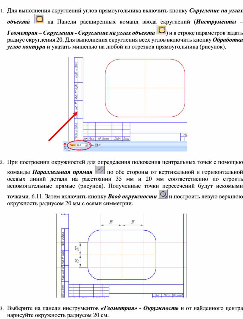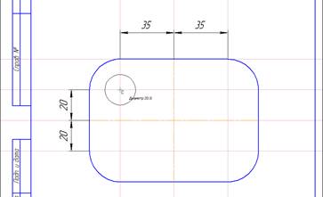 радиус скругления 20. Для выполнения скругления всех углов включить кнопку Обработка
