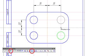 правого отверстия. Выделить оба верхних отверстия о командой Выделить