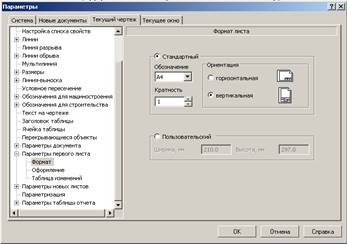 2. Задайте лист нужного размера и положения, для этого в строке меню выберите меню Сервис – Параметры… - Параметры первого листа – Формат