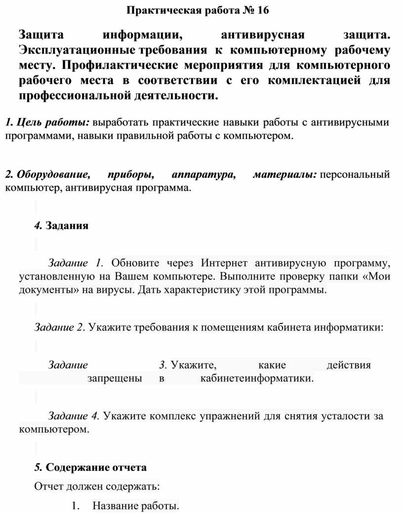 2. Оборудование, приборы, аппаратура, материалы: персональный компьютер, антивирусная программа.