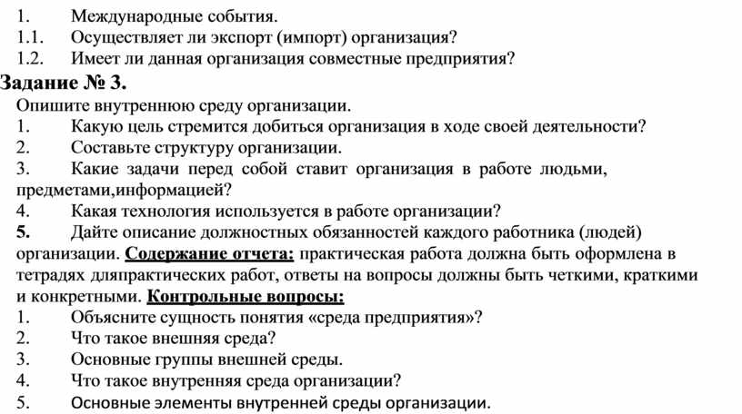 - уметь давать описание внешней и внутренней среды организации.