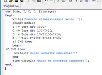 write(‘Введите четырехзначное число ’); readln(Tcde);