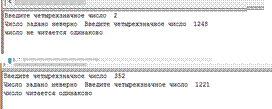 Дано четырехзначное число. Проверить истинность высказывания: «Данное число читается одинаково слева направо и справа налево».