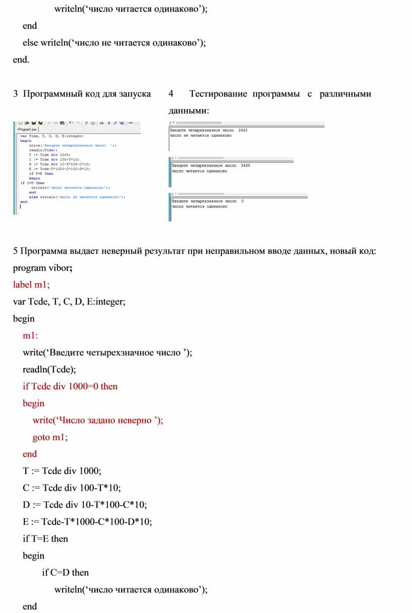 5 Программа выдает неверный результат при неправильном вводе данных, новый код: program vibor;