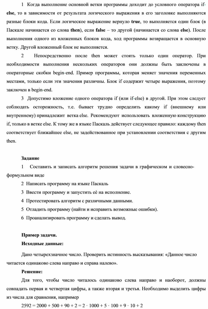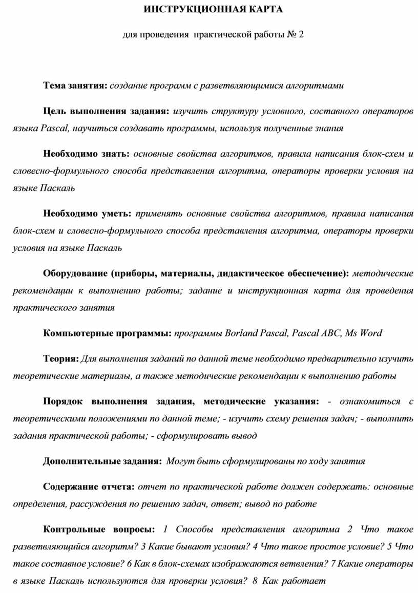 Необходимо уметь: применять основные свойства алгоритмов, правила написания блок-схем и словесно-формульного способа представления алгоритма, операторы проверки условия на языке Паскаль