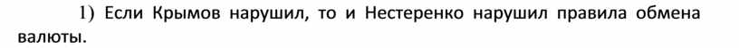 1) Если Крымов нарушил, то и Нестеренко нарушил правила обмена валюты.