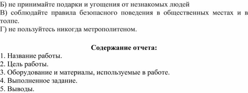Цель работы: ознакомиться с правилами безопасного поведения в местах повышенной социальной опасности.