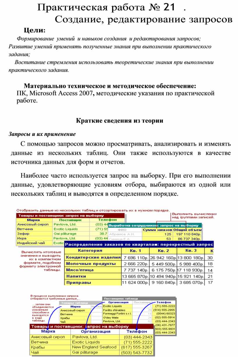 Формирование умений и навыков создания и редактирования запросов;
