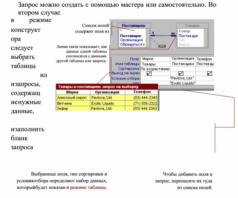 Запрос можно создать с помощью мастера или самостоятельно. Во втором случае