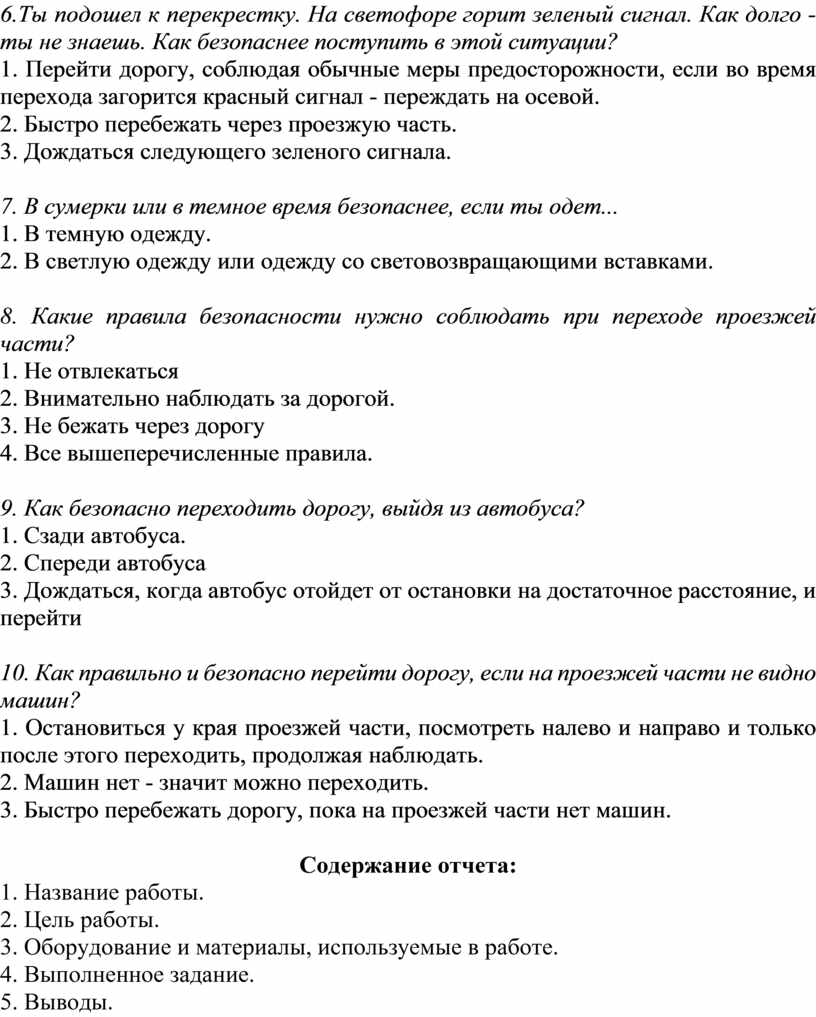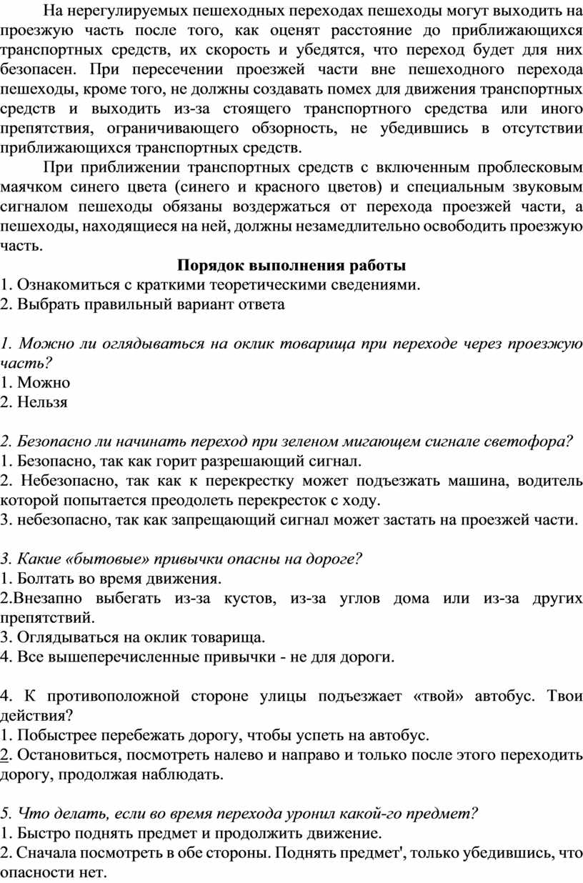 Цель работы: ознакомиться с действиями участников дорожного движения в опасных ситуациях.