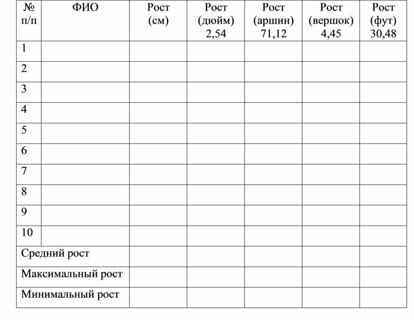 Произведите необходимые расчеты роста учеников в разных единицах измерения.