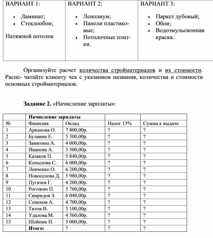 Задание 2. «Начисление зарплаты»: