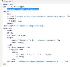 writeln(‘Количество отрицательных элементов = ’, K); end.