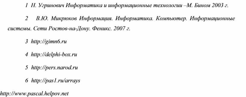 3 Н. Угринович Информатика и информационные технологии –М. Бином 2003 г.