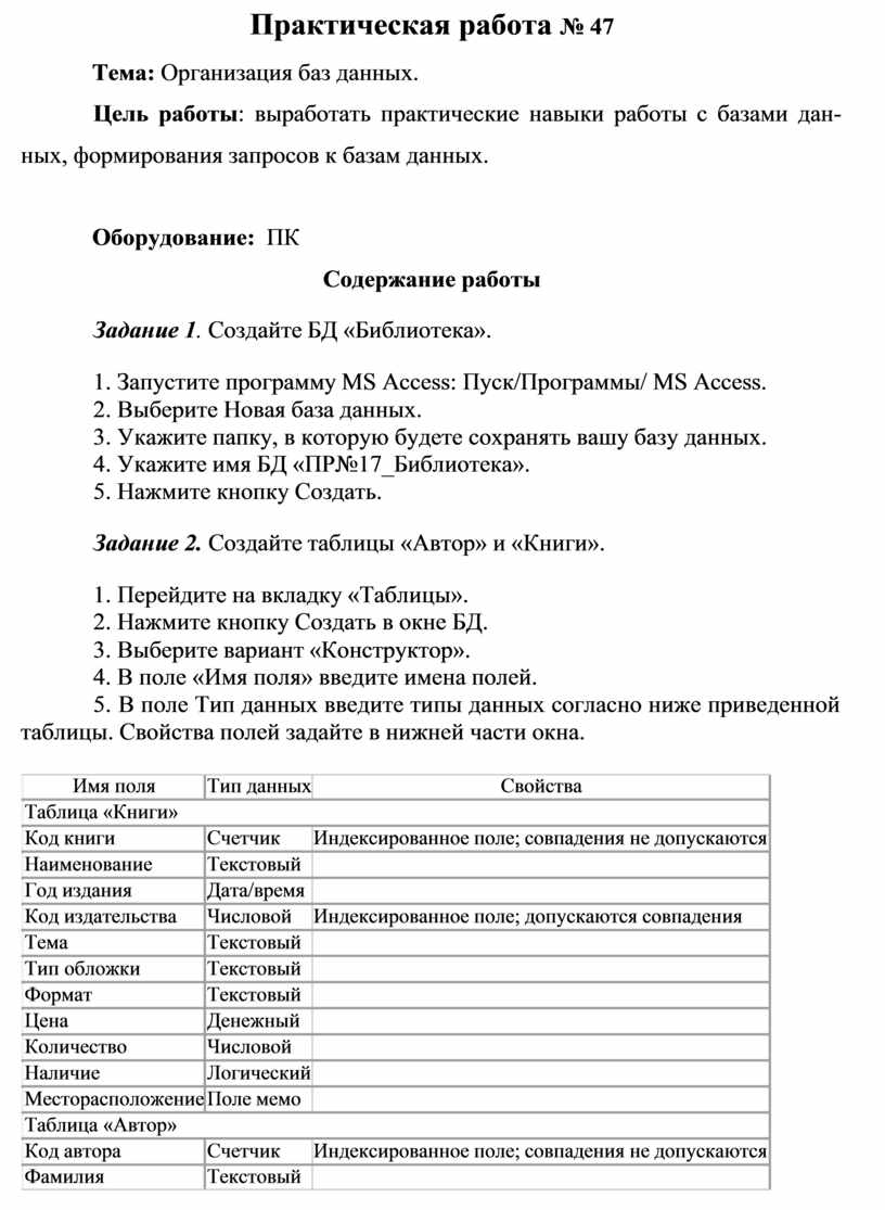 Практическая работа № 47 Тема: Организация баз данных.
