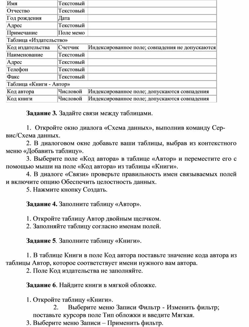 Задание 3. Задайте связи между таблицами.