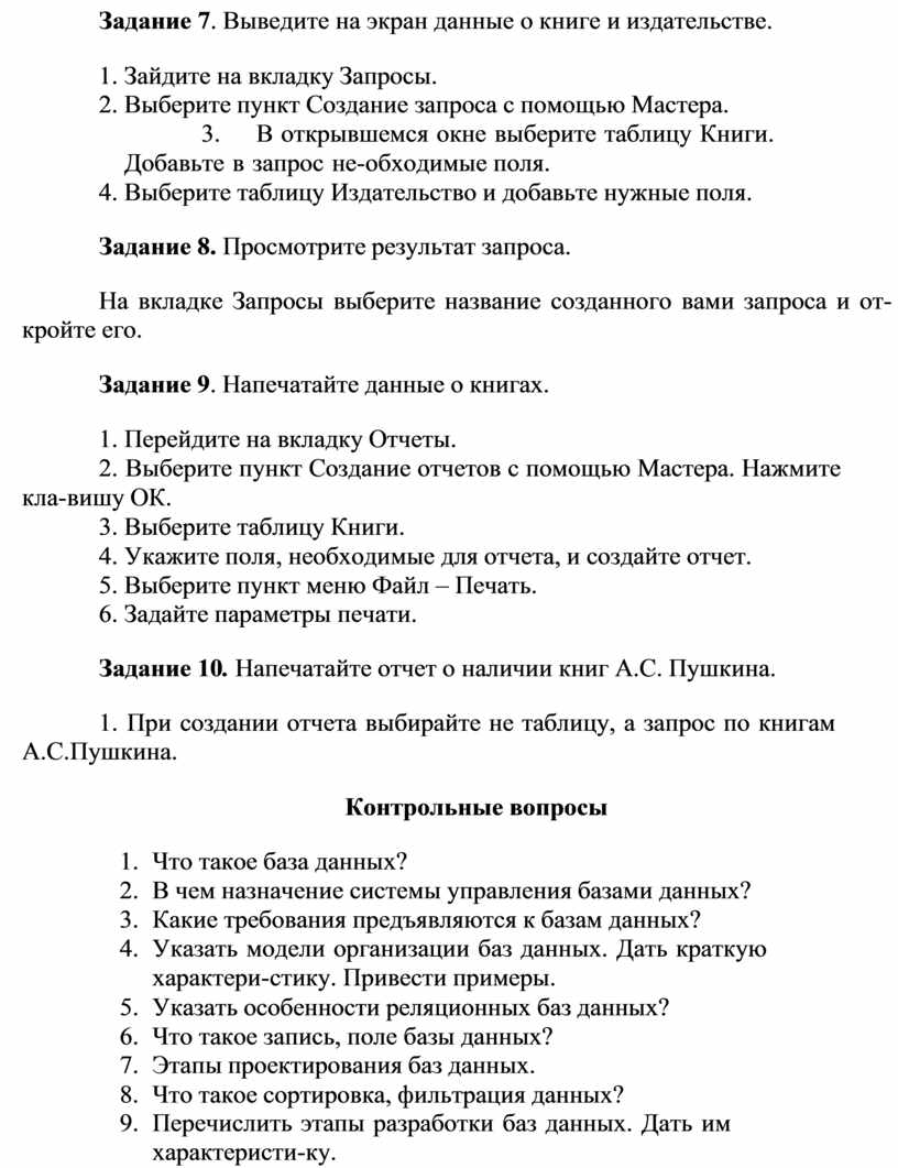 Задание 10. Напечатайте отчет о наличии книг А.С. Пушкина.