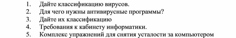 Задание 2. Укажите требования к помещениям кабинета информатики: