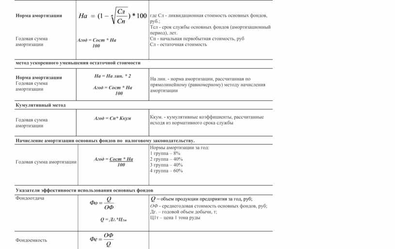 где Сп, Св - соответственно, первоначальная и восстановительная стоимости, руб. Ск.р - сумма расходов на их капитальный ремонт, реконструкцию, модернизацию за период эксплуатации, руб; А- сумма амортизационных отчислений за год, руб; Тф - фактический срок службы, лет |