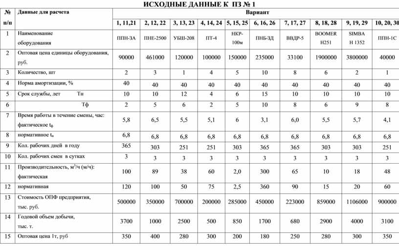 1. Заполнить таблицу №1(по исходным данным индивидуального задания):