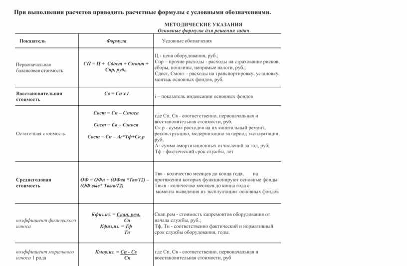 При выполнении расчетов приводить расчетные формулы с условными обозначениями.