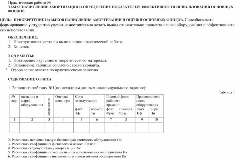 ТЕМА: Начисление амортизации и определение показателей эффективности использования основных фондов.