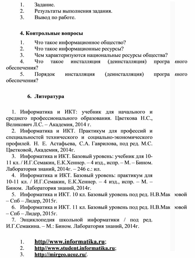 Информационные ресурсы общества. Образовательные информационные ресурсы. Работа с программным обеспечением. Инсталляция программного обеспечения, его использование и обновление