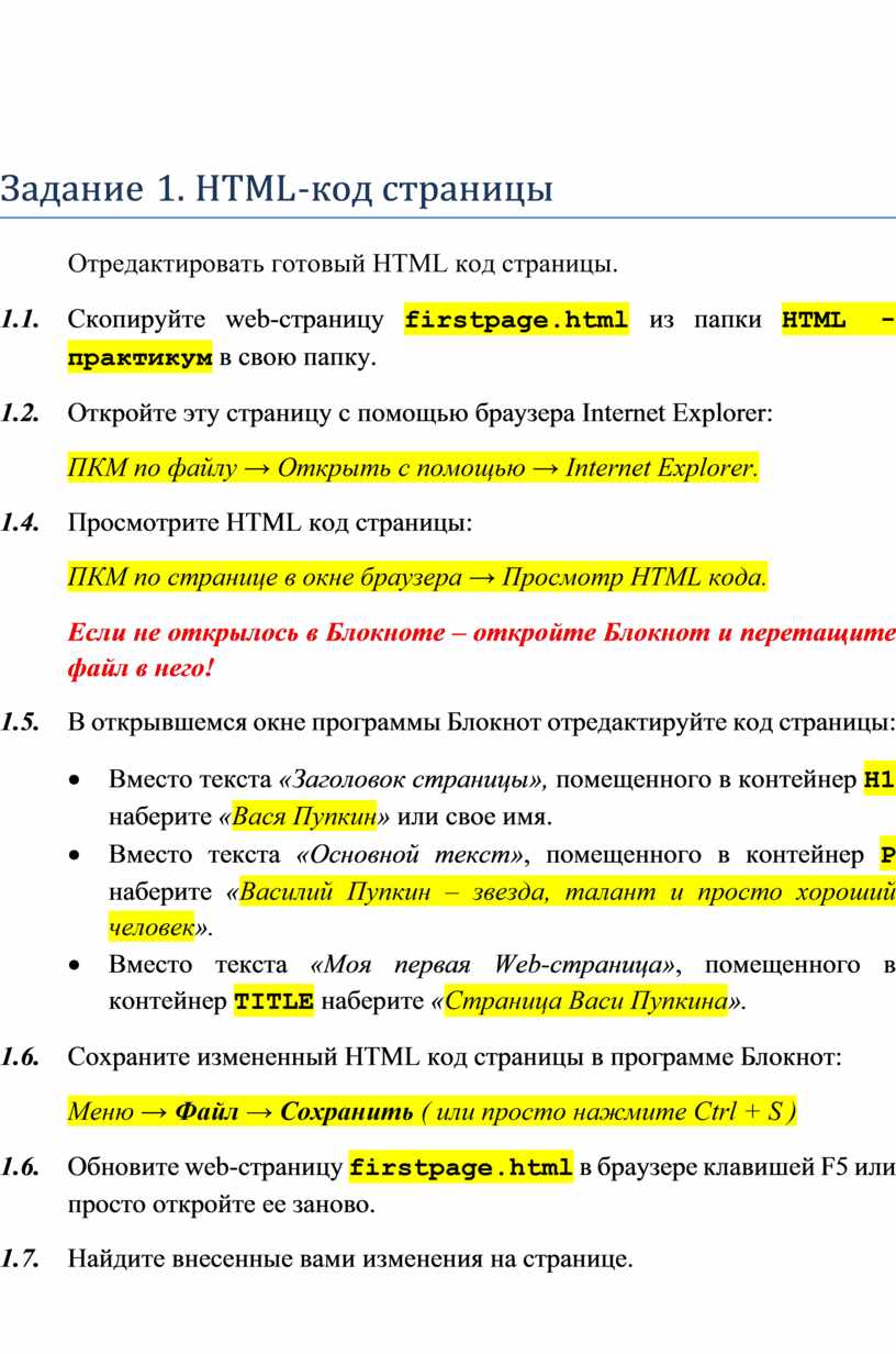 1.1. Скопируйте web-страницу firstpage.html из папки HTML - практикум в свою папку.