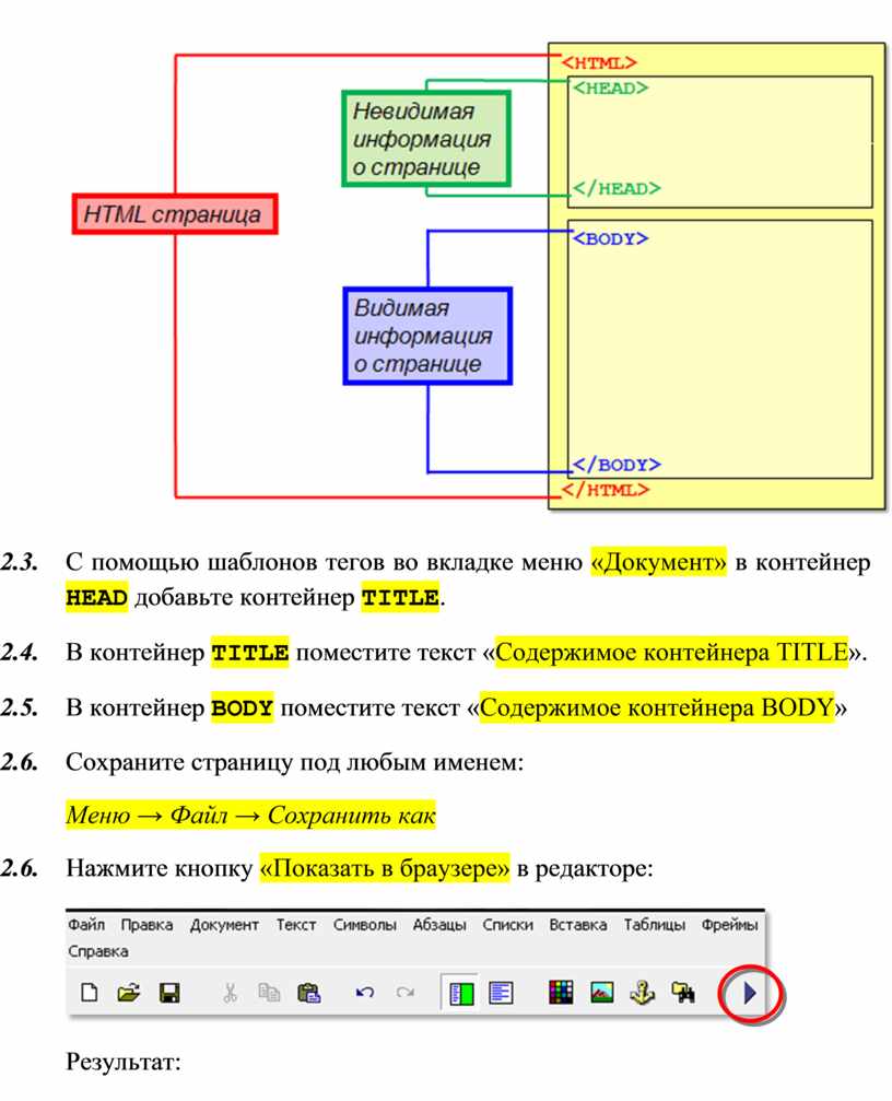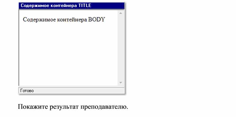 2.5. В контейнер BODY поместите текст «Содержимое контейнера BODY»