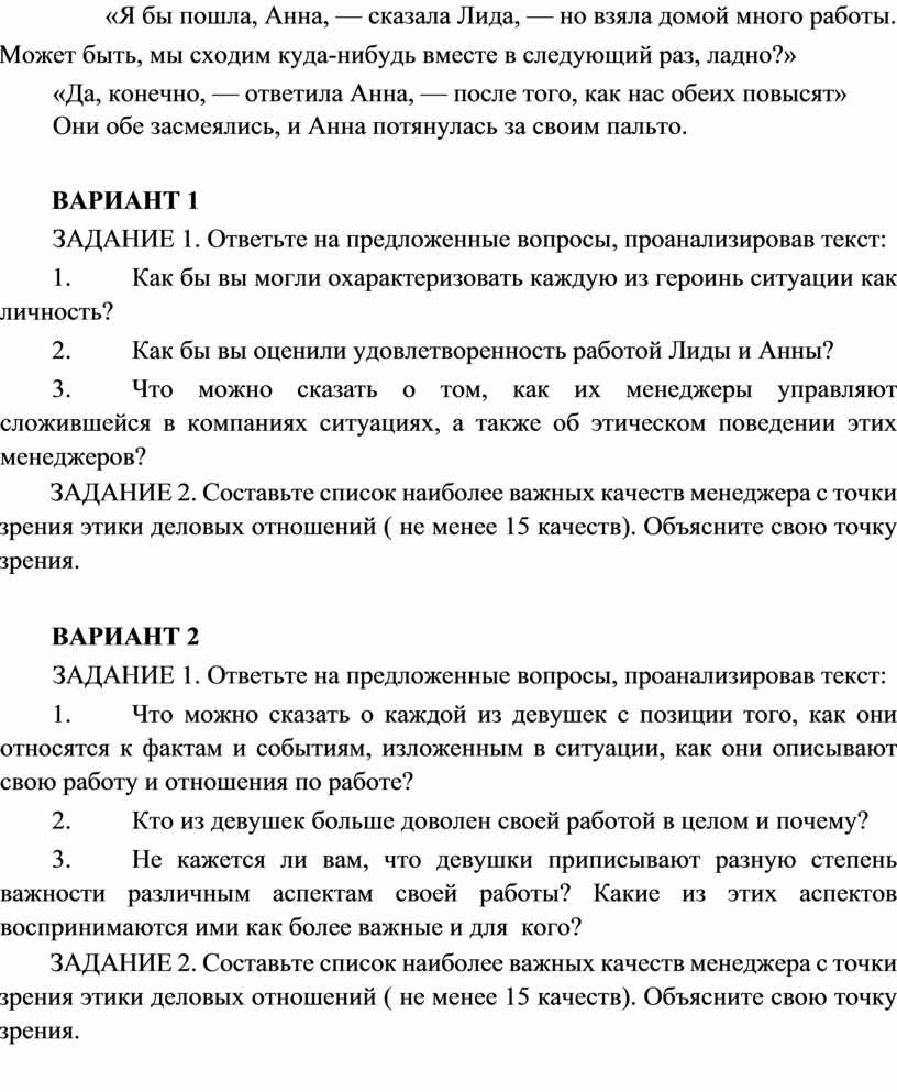 1. Что можно сказать о каждой из девушек с позиции того, как они относятся к фактам и событиям, изложенным в ситуации, как они описывают свою работу и отношения по работе?