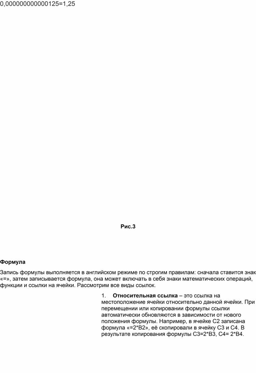 Запись формулы выполняется в английском режиме по строгим правилам: сначала ставится знак «=», затем записывается формула, она может включать в себя знаки математических операций, функции и ссылки на ячейки. Рассмотрим все виды ссылок.