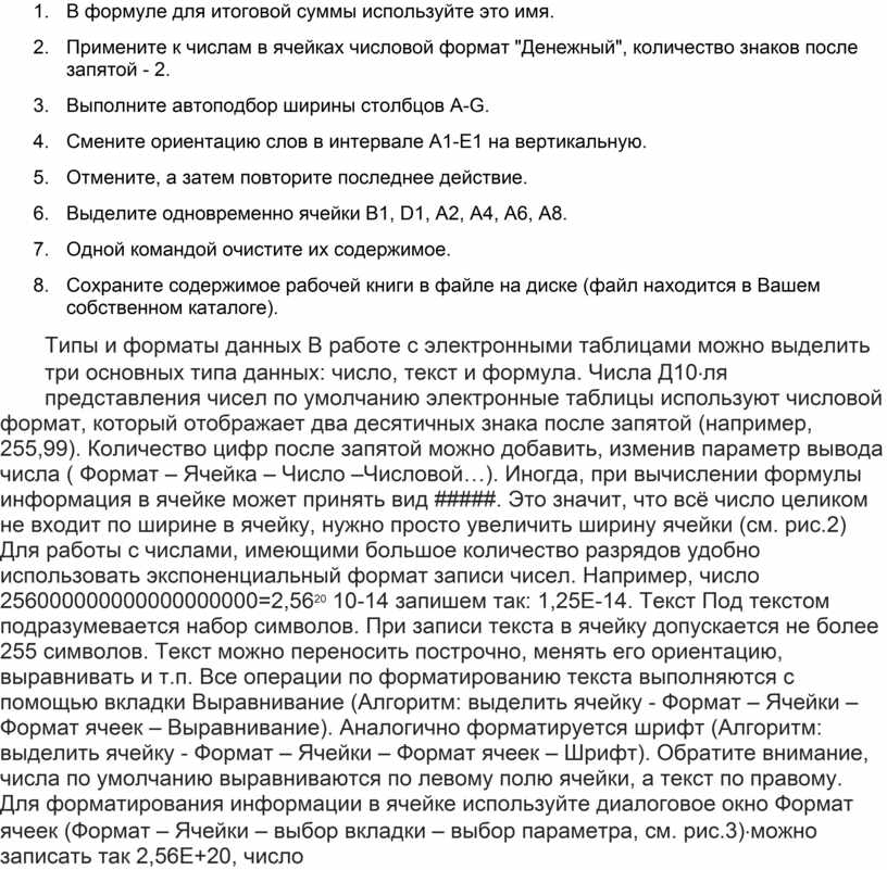 выделить три основных типа данных: число, текст и формула. Числа Д