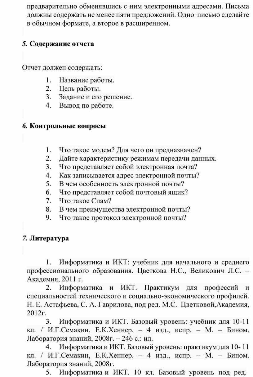 предварительно обменявшись с ним электронными адресами. Письма должны содержать не менее пяти предложений. Одно письмо сделайте в обычном формате, а второе в расширенном.