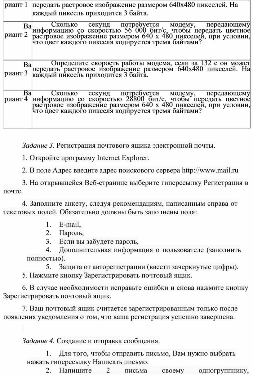 Задание 1. Решите задачу о передаче информации с помощью модема.