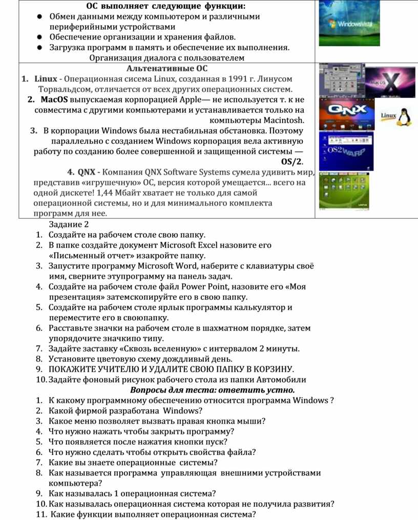 Альтенативные ОС 1. Linux - Операционная сисема Linux, созданная в 1991 г. Линусом Торвальдсом, отличается от всех других операционных систем. 2. MacOS выпускаемая корпорацией Apple— не используется т. к не совместима с другими компьютерами и устанавливается только на компьютеры Macintosh. 3. В корпорации Windows была нестабильная обстановка. Поэтому параллельно с созданием Windows корпорация вела активную работу по созданию более совершенной и защищенной системы — OS/2. 4. QNX - Компания QNX Software Systems сумела удивить мир, представив «игрушечную» ОС, версия которой умещается... всего на одной дискете! 1,44 Мбайт хватает не только для самой операционной системы, но и для минимального комплекта программ для нее. |