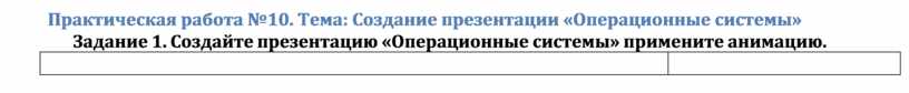 Практическая работа №10. Тема: Создание презентации «Операционные системы» Задание 1. Создайте презентацию «Операционные системы» примените анимацию.