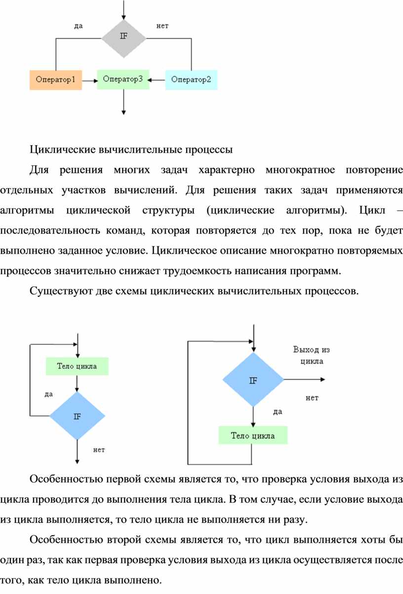 Существуют две схемы циклических вычислительных процессов.