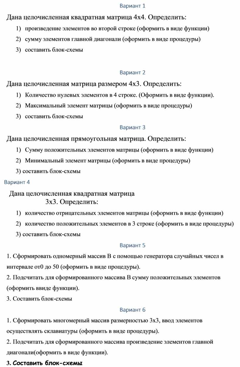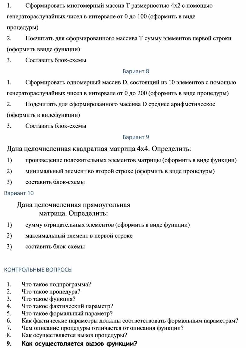 Напишите программу на языке программирования, используя процедуры и функции, по варианту, предложенному преподавателем.