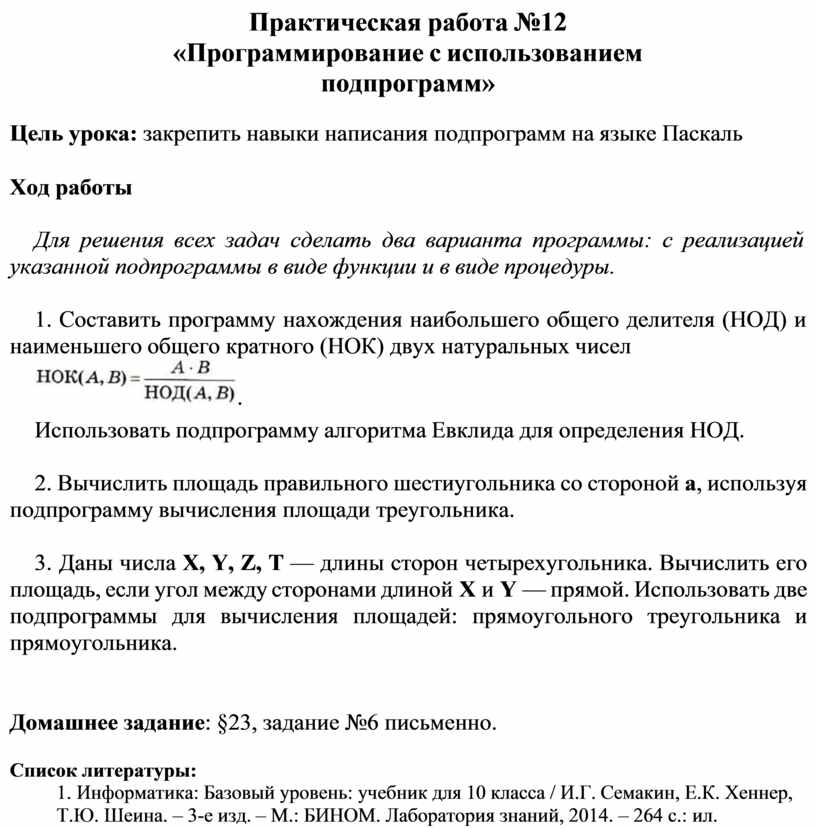 1. Составить программу нахождения наибольшего общего делителя (НОД) и наименьшего общего кратного (НОК) двух натуральных чисел